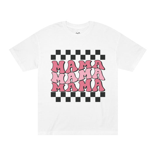 Mama Retro Checkered Tee — Pink 'MAMA' Graphic Shirt